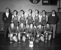 Title: Prince Rupert Gyro Club Jr. Boys' Basketball Team City Champs for 1946-1947 Part of: Wrathall Photo Finishing Ltd. fonds Level: Item Date: 1947 Physical Description: ["1 nitrate negative : b&w ; 7.5 x 10 cm (referred to as copy 1)", "1 photograph : b&w ; 21 x 26 cm (referred to as copy 2)"] Description: Item consists of the Prince Rupert Gyro Club Junior Boys' Basketball Team City Champions gathered for a photo with a sign and a basketball (at Prince Rupert?). The sign reads "Prince Rupert Gyro Club Jr. Boys' Basketball Team City Champions 1946-1947." Those pictured include Joe Haugan, Monk » View details and larger image |