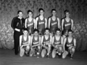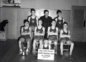 Title: Prince Rupert Gyro Club Jr. Boys' Basketball Team City Champs. 1946-1947 Part of: Wrathall Photo Finishing Ltd. fonds Level: Item Date: 1947 Physical Description: ["1 nitrate negative : b&w ; 7.5 x 10 cm (referred to as copy 1)", "1 photograph : b&w ; 12 x 18 cm (referred to as copy 2)"] Description: Prince Rupert Gyro Club Junior Boys' Basketball Team City Champions. Pictured from left to right is: two unidentified men, Joe Haugan, Monk Sunberg (Bill), Eric Moore, Doug Shier and Syd Scherk and an unidentified man. Handwritten annotation on recto of copy 2 reads: "1947." Stamped annotation on » View details and larger image |