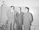 Title: Mayor Peter Lester. Johnny Clifton and Another Man at the All Native Basketball Tournament at Prince Rupert, B.C. in 1962 Part of: Wrathall Photo Finishing Ltd. fonds Level: Item Date: February 22, 1962 Physical Description: ["1 acetate negative : b&w ; 9.5 x 12 cm (referred to as copy 1)", "1 photograph : b&w ; 21 x 26 cm (referred to as copy 2)"] Description: Item depicts Mayor Peter Lester, Johnny Clifton and another man standing at a microphone at the All-Native Basketball Tournament at the Prince Rupert Civic Centre on 2nd Avenue West. Mayor Lester is pictured on the left. Handwritten annotation on recto of copy 2 reads: "At All Native Basketball » View details and larger image |