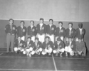 Title: Prince Rupert High School Basketball Team on January 18, 1963 Part of: Wrathall Photo Finishing Ltd. fonds Level: Item Date: January 18, 1963 Physical Description: ["1 acetate negative : b&w ; 9.5 x 12 cm (referred to as copy 1)", "1 photograph : b&w ; 21 x 26 cm (referred to as copy 2)"] Description: Prince Rupert High School basketball team gathered in the School's gymnasium. Pictured in the back row from left to right is: teacher and coach Don Hartwig, Skip Cronck, Danny Rooney, Cliff MacArthur, Ken Skulds and Dave Petrie. Pictured in the front row from left to right is: Wayne Haldane, Duncan » View details and larger image |