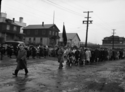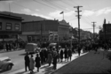 Title: Army Parade on the 300 to 400 Block of 3rd Avenue West at Prince Rupert, B.C. in 1942 Part of: Wrathall Photo Finishing Ltd. fonds Level: Item Date: 1942 Physical Description: ["1 nitrate negative : b&w ; 9.5 x 14 cm (referred to as copy 1)", "1 photograph : b&w ; 21 x 26 cm (referred to as copy 2)"] Description: Item consists of crowds lined along the sidewalks watching an army parade on the 300 to 400 Block of 3rd Avenue West. The view includes Linzey & Ingram Ltd., Overwaitea Foods, The Empire Newspaper, the Chris Mill Bakery, McRae Brothers, the Moose Hall, and 4th Avenue West above. Handwritten » View details and larger image |