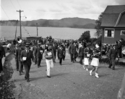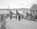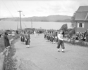Title: American Shriners and Local Band in a Parade at Prince Rupert, B.C. in June of 1952 Part of: Wrathall Photo Finishing Ltd. fonds Level: Item Date: June 1952 Physical Description: ["1 nitrate negative : b&w ; 9.5 x 12 cm (referred to as copy 1)", "1 photograph : b&w ; 21 x 26 cm (referred to as copy 2)"] Description: Item consists of American Shriners and a local band in a parade coming up from the wharf. Pillsbury House and the harbour can be seen in the background. Handwritten annotation on recto of copy 2 reads: "American Shriners Parade. Visiting Pr. Rupert. June 1952. Local Band." Stamped annotation on » View details and larger image |