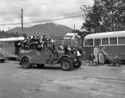 Title: American Shriners in a Parade at Prince Rupert in June of 1952 Part of: Wrathall Photo Finishing Ltd. fonds Level: Item Date: June 1952 Physical Description: ["1 nitrate negative : b&w ; 9.5 x 12 cm (referred to as copy 1)", "1 photograph : b&w ; 21 x 26 cm (referred to as copy 2)", "1 photograph : b&w ; 21 x 26 cm (referred to as copy 3)"] Description: Item consists of American Shriners and a clown riding in a Gizeh patrol car as part of a parade. People can be seen walking alongside the car. Homes and Mount Morse can be seen in the background. Handwritten annotation recto of copies 2 and 3 reads: "American Shriners Visiting Pr. Rupert. June » View details and larger image |