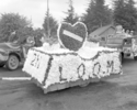 Title: Loyal Order Of the Moose Float in Queen Elizabeth II's Coronation Parade at Prince Rupert, B.C. in 1953 Part of: Wrathall Photo Finishing Ltd. fonds Level: Item Date: 1953 Physical Description: ["1 acetate negative : b&w ; 9.5 x 12 cm (referred to as copy 1)", "1 photograph : b&w ; 21 x 26 cm (referred to as copy 2)"] Description: Item consists of a Loyal Order of the Moose float participating in Queen Elizabeth II's coronation parade. Handwritten annotation on recto of copy 2 reads: "Coronation Parade. Prince Rupert, B.C. 1953." Stamped annotation on verso of copy 2 reads: "Photo by Jack Wrathall Prince Rupert, B. C." View details and larger image |