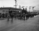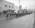 Title: Coronation Parade for Queen Elizabeth II at Prince Rupert, B.C. in 1953 Part of: Wrathall Photo Finishing Ltd. fonds Level: Item Date: June 2, 1953 Physical Description: ["1 acetate negative : b&w ; 9.5 x 12 cm (referred to as copy 1)", "1 photograph : b&w ; 21 x 26 cm (referred to as copy 2)"] Description: Item consists of the coronation parade for Queen Elizabeth II including Sea Cadet and a marching band going past Bob Parker Ltd. on McBride Street. Handwritten annotation on recto of copy 2 reads: "Coronation Parade. McBride St. Pr. Rupert, B.C. 1953." Stamped annotation on verso of copy 2 reads: » View details and larger image |