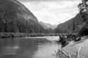 Title: Ron Roberts in the Kasiks River in 1947 Part of: Wrathall Photo Finishing Ltd. fonds Level: Item Date: 1947 Physical Description: ["1 nitrate negative : b&w ; 14 x 9 cm (referred to as copy 1)", "1 photograph : b&w ; 26 x 21 cm (referred to as copy 2)"] Description: Item consists of Ron Roberts standing in the Kasiks River wearing hip waders with his hand on a motorboat while looking up at a waterfall. Handwritten annotation on recto of copy 2 reads: "Kasicks [sic] River. East of Kwinitsa. Skeena River. 1947. J.R.W. - Ron Roberts." Stamped annotation on verso » View details and larger image |