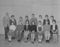 Title: Students and a Teacher at Booth Memorial High School at Prince Rupert, B.C. in 1959 Part of: Wrathall Photo Finishing Ltd. fonds Level: Item Date: 1959 Physical Description: ["1 acetate negative : b&w ; 9.5 x 12 cm (referred to as copy 1)", "1 photograph : b&w ; 21 x 26 cm (referred to as copy 2)"] Description: Item consists of fourteen students and teacher in the gym at Prince Rupert Junior High School. Pictured in the front row first on the left is Judy Pinnerer, second on the left is Skip Cronck and farthest on the right is Janet Gordon. Pictured in the back row standing farthest on the left is teacher » View details and larger image |