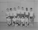 Title: Booth Memorial High School Basketball Team at Prince Rupert, B.C. in 1959 Part of: Wrathall Photo Finishing Ltd. fonds Level: Item Date: 1959 Physical Description: ["1 acetate negative : b&w ; 9.5 x 12 cm (referred to as copy 1)", "1 photograph : b&w ; 21 x 26 cm (referred to as copy 2)"] Description: Item consists of twelve male students in the gym at Booth Memorial (Junior) High School. Pictured in the back row from left to right is Maurice Desautels, Peter Squires, Eugene Rose, Jim Strand, Jim Greer, Reggie Phillips and Charles Brown. Pictured in the front row from left to right is: Brian » View details and larger image |
