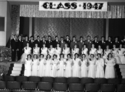 Title: Graduation Class at Prince Rupert, B.C. in 1947 Part of: Wrathall Photo Finishing Ltd. fonds Level: Item Date: 1947 Physical Description: ["1 nitrate negative : b&w ; 7.5 x 10 cm (referred to as copy 1)", "1 photograph : b&w ; 21 x 26 cm (referred to as copy 2)"] Description: Item consists of a graduation class of 1947 (at Booth Memorial School?) consisting of forty-two students. Handwritten annotation on recto of copy 2 reads: "Graduation Class - 1947. Prince Rupert, B.C." Stamped annotation on verso of copy 2 reads: "Photo by Jack Wrathall Prince Rupert, B. C." View details and larger image |