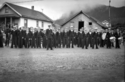 Title: Sea Cadets in Front of Courthouse at Prince Rupert, B.C. in 1936 Part of: Wrathall Photo Finishing Ltd. fonds Level: Item Date: 1936 Physical Description: ["1 acetate negative : b&w ; 13 x 18 cm (referred to as copy 1)", "1 photograph : b&w ; 21 x 26 cm (referred to as copy 2)"] Description: Item consists of twenty-three Sea Cadets including their officer in front of the Prince Courthouse on Market Place. Handwritten annotation on recto of copy 2 reads: "Sea Cadets - Front of Court House." Stamped annotation on verso of copy 2 reads: "Photo by Jack Wrathall Prince Rupert, B. C." View details and larger image |