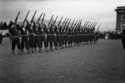 Title: Royal Canadian Navy Volunteer Reserve Firing Salute at Courthouse in Prince Rupert, B.C. on November 11, 1938 Part of: Wrathall Photo Finishing Ltd. fonds Level: Item Date: November 11, 1938 Physical Description: ["1 nitrate negative : b&w ; 9 x 14 cm (referred to as copy 1)", "1 photograph : b&w ; 21 x 26 cm (referred to as copy 2)"] Description: Item consists of Royal Canadian Navy Volunteer Reservists conducting a firing salute on Remembrance Day at the Prince Rupert Courthouse grounds on Market Place. Handwritten annotation on recto of copy 2 reads: "R.C.N.V. Reserve. Firing Salute. At Court House. Nov. 11 - 1938." Stamped annotation on » View details and larger image |