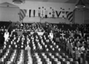Title: Navy Week at the Capitol Theatre on 3rd Avenue at Prince Rupert, B.C. in 1946 Part of: Wrathall Photo Finishing Ltd. fonds Level: Item Date: 1946 Physical Description: ["1 nitrate negative : b&w ; 8 x 11 cm (referred to as copy 1)", "1 photograph : b&w ; 21 x 26 cm (referred to as copy 2)"] Description: A large group of people sitting inside the Capitol Theatre some wearing uniforms others wearing civilian clothing with flags hanging in the background during Navy Week. Handwritten annotation on recto of copy 2 reads: "Navy Week. 1946 - Capitol Theatre. Pr. Rupert, B.C. 1946." Stamped annotation on » View details and larger image |