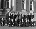 Title: Sea Cadets at the Courthouse at Prince Rupert, B.C. in 1935 Part of: Wrathall Photo Finishing Ltd. fonds Level: Item Date: 1935 Physical Description: ["1 acetate negative : b&w ; 13 x 18 cm (referred to as copy 1)", "1 photograph : b&w ; 21 x 26 cm (referred to as copy 2)"] Description: Item consists of twenty-three Sea Cadets including their officer standing in three rows in front of the Prince Rupert Courthouse on Market Place. Handwritten annotation on recto of copy 2 reads: "Sea Cadets. Pr. Rupert, B.C." Stamped annotation on verso of copy 2 reads: "Photo by Jack Wrathall » View details and larger image |