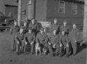 Title: Group of Canadian Army Medical Corps Men at Roosevelt Park in Prince Rupert, B.C. in 1946 Part of: Wrathall Photo Finishing Ltd. fonds Level: Item Date: 1946 Physical Description: ["1 nitrate negative : b&w ; 8 x 11 cm (referred to as copy 1)", "1 acetate negative : b&w ; 20 x 25 cm (referred to as copy 2)", "1 photograph : b&w ; 21 x 26 cm (referred to as copy 3)"] Description: Item consists of eleven men from the Canadian Army Medical Corps and a dog lined up in two rows at Roosevelt Park with two buildings in the background and a sign that reads "Headquarters 17th (N.B.C.) Coast Regiment R.C.A. C.A." Pictured in the back row farthest on the right is Sergeant Spiro » View details and larger image |
