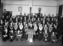 Title: Members of the Moose Lodge at Prince Rupert, B.C. in 1945 Part of: Wrathall Photo Finishing Ltd. fonds Level: Item Date: 1945 Physical Description: ["1 nitrate negative : b&w ; 8 x 11 cm (referred to as copy 1)", "1 photograph : b&w ; 21 x 26 cm (referred to as copy 2)", "1 photograph : b&w ; 21 x 26 cm (referred to as copy 3)"] Description: Item consists of a large group of men in the Moose Lodge. Handwritten annotation on recto of copies 2 and 3 reads: "Members Moose Lodge. Pr. Rupert, B.C. 1945." Stamped annotation on verso of copies 2 and 3 reads: "Photo by Jack Wrathall Prince Rupert, B. C." View details and larger image |