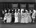 Title: Ladies of the Moose Lodge at Prince Rupert, B.C. on May 7, 1951 Part of: Wrathall Photo Finishing Ltd. fonds Level: Item Date: May 7, 1951 Physical Description: ["1 nitrate negative : b&w ; 10 x 13.5 cm (referred to as copy 1)", "1 photograph : b&w ; 21 x 26 cm (referred to as copy 2)"] Description: Item consists of sixteen women from the Moose Lodge in two rows posing for a photograph. They are all wearing flower corsages. One of the women pictured in the back row is Amy Casper. The woman pictured in the front row second from the left is Mabel Skinner. Handwritten annotation on recto of copy 2 » View details and larger image |