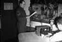 Title: Celebration at Exhibition Building at Prince Rupert, B.C. in 1945 Part of: Wrathall Photo Finishing Ltd. fonds Level: Item Date: 1945 Physical Description: ["1 nitrate negative : b&w ; 8 x 11 cm (referred to as copy 1)", "1 photograph : b&w ; 21 x 26 cm (referred to as copy 2)", "1 photograph : b&w ; 9 x 11 cm (referred to as copy 3)"] Description: Item consists of four women one of whom is Mrs. Keilback standing in a booth that is selling food such as peanuts, hot dogs and coffee. Two young boys stand outside of the booth. Handwritten annotation on recto of copy 2 reads: "2. Mrs Keilback. Exhibition Bldg. 1945. Pr. Rupert." Stamped annotation » View details and larger image |