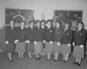Title: Legion Ladies at Prince Rupert B.C. on January 7, 1960 Part of: Wrathall Photo Finishing Ltd. fonds Level: Item Date: January 7, 1960 Physical Description: ["1 acetate negative : b&w ; 10 x 13 cm (referred to as copy 1)", "1 photograph : b&w ; 21 x 26 cm (referred to as copy 2)"] Description: Item consist of nine female members of the Royal Canadian Legion standing in a row wearing matching blazers and berets with a crest on them. Handwritten annotation on recto of copy 2 reads: "Legion Ladies. Prince Rupert, B.C. Jan. 7 - 1960." Stamped annotation on verso of copy 2 reads: "Photo by » View details and larger image |