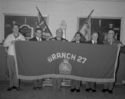 Title: Men of the Canadian Legion : Jan 7, 1960 Part of: Wrathall Photo Finishing Ltd. fonds Level: Item Date: January 7, 1960 Physical Description: 1 acetate negative : b&w ; 10 x 13 cm Description: Item consists of Six men holding up a banner that reads Branch 27 with the Royal Canadian Legion crest on it. View details and larger image |
