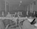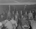 Title: Banquet at Royal Canadian Legion Branch 27 at Prince Rupert, B.C. on June 26, 1957 Part of: Wrathall Photo Finishing Ltd. fonds Level: Item Date: June 26, 1957 Physical Description: ["1 acetate negative : b&w ; 10 x 13.5 cm (referred to as copy 1)", "1 photograph : b&w ; 21 x 26 cm (referred to as copy 2)"] Description: Item consists of eight members of the Royal Canadian Legion standing in a row as a group of other men sitting at tables look on during the men's banquet at the Royal Canadian Legion Branch 27 in Prince Rupert. Handwritten annotation on recto of copy 2 reads: "Royal Can. Legion 27. Pr. Rupert. June » View details and larger image |