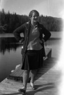 Title: Margaret Gilchrist at Salt Lakes Near Prince Rupert, B.C. in 1932 Part of: Wrathall Photo Finishing Ltd. fonds Level: Item Date: 1932 Physical Description: ["1 nitrate negative : b&w ; 6.5 x 4.5 cm", "1 photograph : b&w ; 26 x 21 cm"] Description: Item consists of Margaret Gilchrist, a friend of the Wrathall family, standing on a dock at Salt Lakes showing the water and trees in the background. View details and larger image |