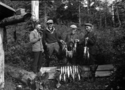 Title: George Wilkinson, Jack Wrathall, Bob Ross, Harold Ross at Khtada Lake, B.C. in 1928 Part of: Wrathall Photo Finishing Ltd. fonds Level: Item Date: 1928 Physical Description: ["1 nitrate negative : b&w ; 12.5 x 17.5 cm (referred to as copy 1)", "1 photograph : b&w ; 21 x 26 cm (referred to as copy 2)"] Description: Item consists of George Wilkinson, Jack Wrathall, Bob Ross and Harold Ross at Khtada Lake holding up a large amount of trout. Handwritten annotation on recto of copy 2 reads: "Geo. Wilkinson - Jack Wrathall - Bob Ross - Harold Ross. Khatada [sic] Lake - 1928." Stamped annotation on verso of copy 2 » View details and larger image |