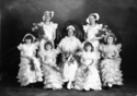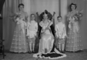 Title: May Queen at Prince Rupert, B.C. in 1935 Part of: Wrathall Photo Finishing Ltd. fonds Level: Item Date: 1935 Physical Description: ["1 nitrate negative : b&w ; 12.5 x 17.5 cm (referred to as copy 1)", "1 photograph : b&w ; 21 x 26 cm (referred to as copy 2)"] Description: Item consists of the 1935 May Queen sitting in a throne surrounded by six young women and girls, all holding bouquets. Those pictured include Marie Schaeffer, Emily Christopher and June Dickens. Handwritten annotation on recto of copy 2 reads: "May Queen." Stamped annotation on verso of copy 2 » View details and larger image |