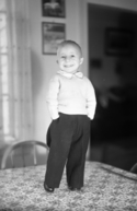 Title: Little Person Dickie Sorenson in 1944 Part of: Wrathall Photo Finishing Ltd. fonds Level: Item Date: 1944 Physical Description: ["1 nitrate negative : b&w ; 15 x 9.5 cm", "1 photograph : b&w ; 12 x 8 cm"] Description: Item consists of Dickie Sorenson, a little person, standing on a table as a child at an unknown location. View details and larger image |