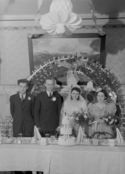 Title: Mr. and Mrs. Elmer Clausen's Wedding at Prince Rupert, B.C. in 1936 Part of: Wrathall Photo Finishing Ltd. fonds Level: Item Date: 1936 Physical Description: ["1 acetate negative : b&w ; 16 x 12.5 cm (referred to as copy 1)", "1 photograph : b&w ; 21 x 26 cm (referred to as copy 2)"] Description: Item consists of the Clausen wedding reception at the Commodore Cafe in 1936. Pictured from left to right is: Jack Campbell, Elmer Clausen, Eileen Clausen (nee Mair) and an unidentified woman standing behind the head table. Handwritten annotation on recto of copy 2 reads: "1. Jackie Campbell. 2. » View details and larger image |