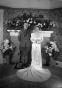 Title: Mr. and Mrs. Earl Norris Wedding in 1944 Part of: Wrathall Photo Finishing Ltd. fonds Level: Item Date: 1944 Physical Description: ["1 acetate negative : b&w ; 17.5 x 12.5 cm (referred to as copy 1)", "1 photograph : b&w ; 26 x 21 cm (referred to as copy 2)"] Description: Item consists of Earl and Helen Norris (nee McLeod) posing in front of a fireplace that is covered in flowers on their wedding day in 1944. Earl Norris is in a military uniform. Helen Norris (nee Mcleod) is the daughter of Mr. and Mrs. Jarvis McLeod. Handwritten annotation on recto of copy 2 reads: » View details and larger image |