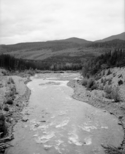 Title: Big Oliver Creek East of Terrace, B.C. in 1960 Part of: Wrathall Photo Finishing Ltd. fonds Level: Item Date: 1960 Physical Description: ["1 acetate negative : b&w ; 12 x 9.5 cm (referred to as copy 1)", "1 photograph : b&w ; 26 x 21 cm (referred to as copy 2)"] Description: Item consists of the an overhead view of the Big Oliver Creek East of Terrace showing banks and mud flats. Handwritten annotation on recto of copy 2 reads: "Big Oliver East of Terrace. 1960." Stamped annotation on verso of copy 2 reads: "Photo by Jack Wrathall Prince Rupert, B. C." View details and larger image |