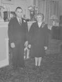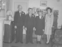 Title: Guests at the Molly Owens Wedding at Prince Rupert, B.C. on November 22, 1946 Part of: Wrathall Photo Finishing Ltd. fonds Level: Item Date: November 22, 1946 Physical Description: ["1 nitrate negative : b&w ; 11 x 8 cm (referred to as copy 1)", "1 photograph : b&w ; 26 x 21 cm (referred to as copy 2)"] Description: Item consists of a man and woman standing side by side at the wedding of Molly Owens. Handwritten annotation on recto of copy 2 reads: "Nov. 22 - 1946. Mr. & Mrs. Wedding." Stamped annotation on verso of copy 2 reads: "Photo by Jack Wrathall Prince Rupert, B. C." View details and larger image |