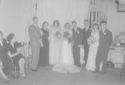Title: Mr. and Mrs. Leonard Youngman Wedding in 1947 Part of: Wrathall Photo Finishing Ltd. fonds Level: Item Date: 1947 Physical Description: ["1 nitrate negative : b&w ; 10 x 15 cm (referred to as copy 1)", "1 photograph : b&w ; 21 x 26 cm (referred to as copy 2)"] Description: Mary Youngman (nee Dybhavn) and Leonard Youngman standing in the middle with six guests at their wedding in 1947. Handwritten annotation on recto of copy 2 reads: "Mr. & Mrs Youngman Wedding. 1947." Stamped annotation on verso of copy 2 reads: "Photo by Jack Wrathall Prince Rupert, B. C." View details and larger image |