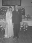 Title: Don Nixon and Jean Krause Wedding in 1948 Part of: Wrathall Photo Finishing Ltd. fonds Level: Item Date: 1948 Physical Description: ["1 nitrate negative : b&w ; 11 x 8 cm (referred to as copy 1)", "1 photograph : b&w ; 26 x 21 cm (referred to as copy 2)"] Description: Item consists of Don and Jean Nixon (nee Krause) standing together with wedding decorations in the background on their wedding day. Handwritten annotation on recto of copy 2 reads: "Jean Krouse. Mr. & Mrs. Jean & Don Nixon. 1948." Stamped annotation on verso of copy 2 reads: "Photo by Jack Wrathall » View details and larger image |