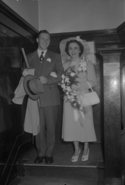 Title: Janet Rochester Wedding in July of 1949 Part of: Wrathall Photo Finishing Ltd. fonds Level: Item Date: July 1949 Physical Description: ["1 nitrate negative : b&w ; 15 x 9.5 cm (referred to as copy 1)", "1 photograph : b&w ; 26 x 21 cm (referred to as copy 2)"] Description: Item consists of John and Janet Richards (nee Rochester) posing for a photograph on their wedding day. Handwritten annotation on recto of copy 2 reads: "Janet Rochester. Mr. & Mrs. Wedding. July - 1949." Stamped annotation on verso of copy 2 reads: "Photo by Jack Wrathall Prince Rupert, B. C." View details and larger image |