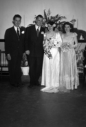 Title: Mr. and Mrs. Bill Long's Wedding on August 19, 1949 Part of: Wrathall Photo Finishing Ltd. fonds Level: Item Date: August 19, 1949 Physical Description: ["1 nitrate negative : b&w ; 15 x 9.5 cm (referred to as copy 1)", "1 photograph : b&w ; 26 x 21 cm (referred to as copy 2)"] Description: Item consists of Bill and Mary Long standing in the centre with Swede Morse on the far left and a woman from the bridal party on the far right on the Longs wedding day. Handwritten annotation on recto of copy 2 reads: "Swede Morse. Mr. & Mrs. Bill Long's Wedding. Aug. 19 - 1949." Stamped annotation » View details and larger image |