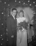 Title: Phil and Marjorie Laporte Wedding on November 1951 Part of: Wrathall Photo Finishing Ltd. fonds Level: Item Date: November 1951 Physical Description: ["1 acetate negative : b&w ; 13 x 10 cm (referred to as copy 1)", "1 photograph : b&w ; 26 x 21 cm (referred to as copy 2)", "1 photograph : b&w ; 13 x 10 cm (referred to as copy 3)"] Description: Item consists of Phil and Marjorie Laporte (nee Shrubsall) standing together on their wedding day. Handwritten annotation on recto of copy 2 reads: "Nov. 1951." Handwritten annotation on verso of copy 2 reads: "Laporte Photo by Jack Wrathall Prince Rupert, B. C." View details and larger image |