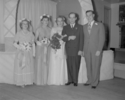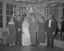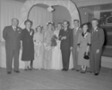 Title: Robert and Dorothy Haudenschild Wedding on March 22, 1952 Part of: Wrathall Photo Finishing Ltd. fonds Level: Item Date: March 22, 1952 Physical Description: ["1 acetate negative : b&w ; 13.5 x 10 cm (referred to as copy 1)", "1 photograph : b&w ; 21 x 26 cm (referred to as copy 2)"] Description: Item consists of Robert and Dorothy Haudenschild standing with a group of guests at their wedding. Pictured from left to right is: a woman, a man, Dorothy Haudenschild (nee Basarabas), Robert Haudenschild, Mrs. Samuel Haudenschild and Samuel Haudenschild. Handwritten annotation on recto of copy 2 » View details and larger image |