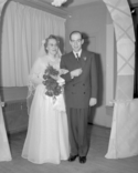Title: Evelyn McNab and Don True Wedding on October 22, 1952 Part of: Wrathall Photo Finishing Ltd. fonds Level: Item Date: October 22, 1952 Physical Description: ["1 acetate negative : b&w ; 13.5 x 10 cm (referred to as copy 1)", "1 photograph : b&w ; 26 x 21 cm (referred to as copy 2)"] Description: Item consists of Evelyn McNab linking arms with Don True on their wedding day. Handwritten annotation on recto of copy 2 reads: "Evelyn McNab. Mr. & Mrs. Don True. Wedding. Oct. 22 - 1952." Stamped annotation on verso of copy 2 reads: "Photo by Jack Wrathall Prince Rupert, B. C." View details and larger image |