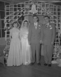 Title: Robert and Dorothy Haudenschild Wedding on March 22, 1952 Part of: Wrathall Photo Finishing Ltd. fonds Level: Item Date: March 22, 1952 Physical Description: ["1 acetate negative : b&w ; 13.5 x 10 cm (referred to as copy 1)", "1 photograph : b&w ; 26 x 21 cm (referred to as copy 2)"] Description: Item consists of Robert and Dorothy Haudenschild (nee Basarabas) standing on the right with a man and woman on their left on their wedding day. Handwritten annotation on recto of copy 2 reads: "Mr. & Mrs. Haudenschild. Wedding. Mar. 22. 1952." Stamped annotation on verso of copy 2 reads: "Photo by » View details and larger image |