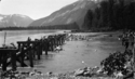 Title: Aftermath of the Skeena River Flood East of Kwinitsa in 1936 Part of: Wrathall Photo Finishing Ltd. fonds Level: Item Date: 1936 Physical Description: ["1 nitrate negative : b&w ; 6 x 10.5 cm (referred to as copy 1)", "1 photograph : b&w ; 21 x 26 cm (referred to as copy 2)", "1 photograph : b&w ; 21 x 26 cm (referred to as copy 3)"] Description: Item consists of trees fallen on CN Railway tracks East of Kwinitsa after the Skeena River Flood. Handwritten annotation on recto of copy 2 reads: "Flood Receding. 1936. Looking West - From Just East of Kwinitsa." Stamped annotation on verso of copies 2 and 3 reads: "Photo by Jack Wrathall Prince » View details and larger image |