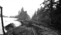 Title: Railway Tracks and a Washed Out Bridge East of Kwinitsa, B.C. During the Skeena River Flood of 1936 Part of: Wrathall Photo Finishing Ltd. fonds Level: Item Date: 1936 Physical Description: ["1 nitrate negative : b&w ; 6 x 10.5 cm (referred to as copy 1)", "1 photograph : b&w ; 21 x 26 cm (referred to as copy 2)"] Description: Item consists of two men standing on the side of CN railway tracks near a washed out bridge east of Kwinitsa during the Skeena River Flood. The tracks can be seen running into the river. The view also includes mountains and trees. Handwritten annotation on recto of copy 2 reads: "Track & Washed Out » View details and larger image |