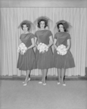 Title: Marilyn Anderson and Art Kerr Wedding : November 23, 1963 Part of: Wrathall Photo Finishing Ltd. fonds Level: Item Date: November 23, 1963 Physical Description: 1 acetate negative : b&w ; 13.5 x 10 cm Description: Item consists of three bridesmaids standing in a row holding bouquets at the wedding of Art and Marilyn Kerr (nee Anderson) on November 23, 1963. View details and larger image |