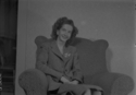 Title: Friend of Aggie Fossum at the 200 Block of 8th Ave West at Prince Rupert, B.C. in 1941 Part of: Wrathall Photo Finishing Ltd. fonds Level: Item Date: 1941 Physical Description: ["1 acetate negative : b&w ; 13 x 18 cm (referred to as copy 1)", "1 photograph : b&w ; 26 x 21 cm (referred to as copy 2)"] Description: Item consists of a female friend of Aggie Fossum sitting in an armchair and posing for a photograph, at a home in the 200 block of 8th Ave West. Handwritten annotation on recto of copy 2 reads: "200 - Blk. 8th. Ave. W. 1940." Stamped annotation on verso of copy 2 reads: "Photo by Jack Wrathall » View details and larger image |