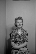 Title: Mrs. Bart Hedstrom in 1945 Part of: Wrathall Photo Finishing Ltd. fonds Level: Item Date: 1945 Physical Description: ["1 nitrate negative : b&w ; 9 x 6 cm (referred to as copy 1)", "1 photograph : b&w ; 26 x 21 cm (referred to as copy 2)"] Description: Item consists of Mrs. Bart Hedstrom posing for a photograph. Handwritten annotation on recto of copy 2 reads: "Mr. & Mrs. Bart. Hedstrom. 1945." Stamped annotation on verso of copy 2 reads: "Photo by Jack Wrathall Prince Rupert, B. C." View details and larger image |