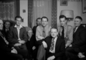 Title: At Pete Peterson's House on the 100 Block of 8th Ave East at Prince Rupert, B.C. in 1945 Part of: Wrathall Photo Finishing Ltd. fonds Level: Item Date: February 1945 Physical Description: ["1 nitrate negative : b&w ; 6 x 9.5 cm (referred to as copy 1)", "1 photograph : b&w ; 21 x 26 cm (referred to as copy 2)"] Description: Item consists of eight men sitting in the living room at Pete Peterson's home at the 100 block of 8th Ave East. Some people included are: Nels Jensen, A. Morse, Dan Wick, Jack Wrathall, Pete Peterson and Paddy Ivarson. Handwritten annotation on recto of copy 2 reads: "No - 1. 2. Nels Jenson. 3. A. » View details and larger image |