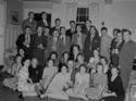 Title: Farewell Party for Mr. and Mrs. Gordon and Cleo (nee Mussallem) Bryant in 1945 Part of: Wrathall Photo Finishing Ltd. fonds Level: Item Date: 1945 Physical Description: ["1 nitrate negative : b&w ; 8 x 10.5 cm", "1 photograph : b&w ; 21 x 26 cm", "1 photograph : b&w ; 9 x 11 cm"] Description: Item consists of a large group of men and women sitting and standing in four rows at a farewell party for Mr. and Mrs. Gordon and Cleo (nee Mussallem) Bryant. Those pictured include Betty Saville, Florence Hood, Cleo Bryant, Gordon Bryant, Mrs. Bill Noble, Jean Elkins, Stan Saville, Syd Elkins, Bill » View details and larger image |