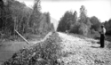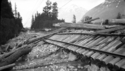 Title: Twisted Railway Tracks East of Kwinitsa, B.C. after the Skeena River Flood of 1936 Part of: Wrathall Photo Finishing Ltd. fonds Level: Item Date: 1936 Physical Description: ["1 nitrate negative : b&w ; 6 x 10.5 cm (referred to as copy 1)", "1 photograph : b&w ; 21 x 26 cm (referred to as copy 2)"] Description: Item consists of a close up of twisted CN Railway tracks after the Skeena River Flood. Logs can be seen on the tracks. Handwritten annotation on recto of copy 2 reads: "Showing Track After Big Flood. East of Kwinitsa. 1936." Stamped annotation on verso of copy 2 reads: "Photo by Jack Wrathall Prince » View details and larger image |