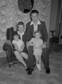 Title: Ray and Marg (nee Fritz) Montgomery and Family on December 3, 1946 Part of: Wrathall Photo Finishing Ltd. fonds Level: Item Date: December 3, 1946 Physical Description: ["1 nitrate negative : b&w ; 11 x 8 cm (referred to as copy 1)", "1 photograph : b&w ; 26 x 21 cm (referred to as copy 2)"] Description: Item consists of Marg Montgomery (nee Fritz) sitting and holding a baby and Ray Montgomery sitting with a little girl standing in front of him in a living room. Handwritten annotation on recto of copy 2 reads: "Margurete [sic] Fritz. Mr. & Mrs. Montgomery & Family. Dec. 3. 1946." Stamped annotation » View details and larger image |