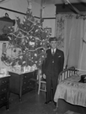 Title: Mr. G. Royer at the Moose Lodge at Prince Rupert, B.C. on June 17, 1948 Part of: Wrathall Photo Finishing Ltd. fonds Level: Item Date: June 17, 1948 Physical Description: ["1 nitrate negative : b&w ; 11 x 8 cm (referred to as copy 1)", "1 photograph : b&w ; 26 x 21 cm (referred to as copy 2)"] Description: Item consists of Mr. G. Royer wearing a Moose Lodge uniform and standing next to a Christmas tree in the Moose Lodge. Handwritten annotation on recto of copy 2 reads: "Mr. G. Royer. Moose Lodge. June 17. 1948." Stamped annotation on verso of copy 2 reads: "Photo by Jack Wrathall Prince Rupert, B. » View details and larger image |
